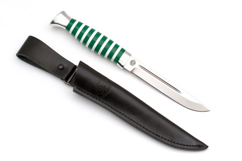 Stainless blade with 100X13M great working steel. Leather sheath.